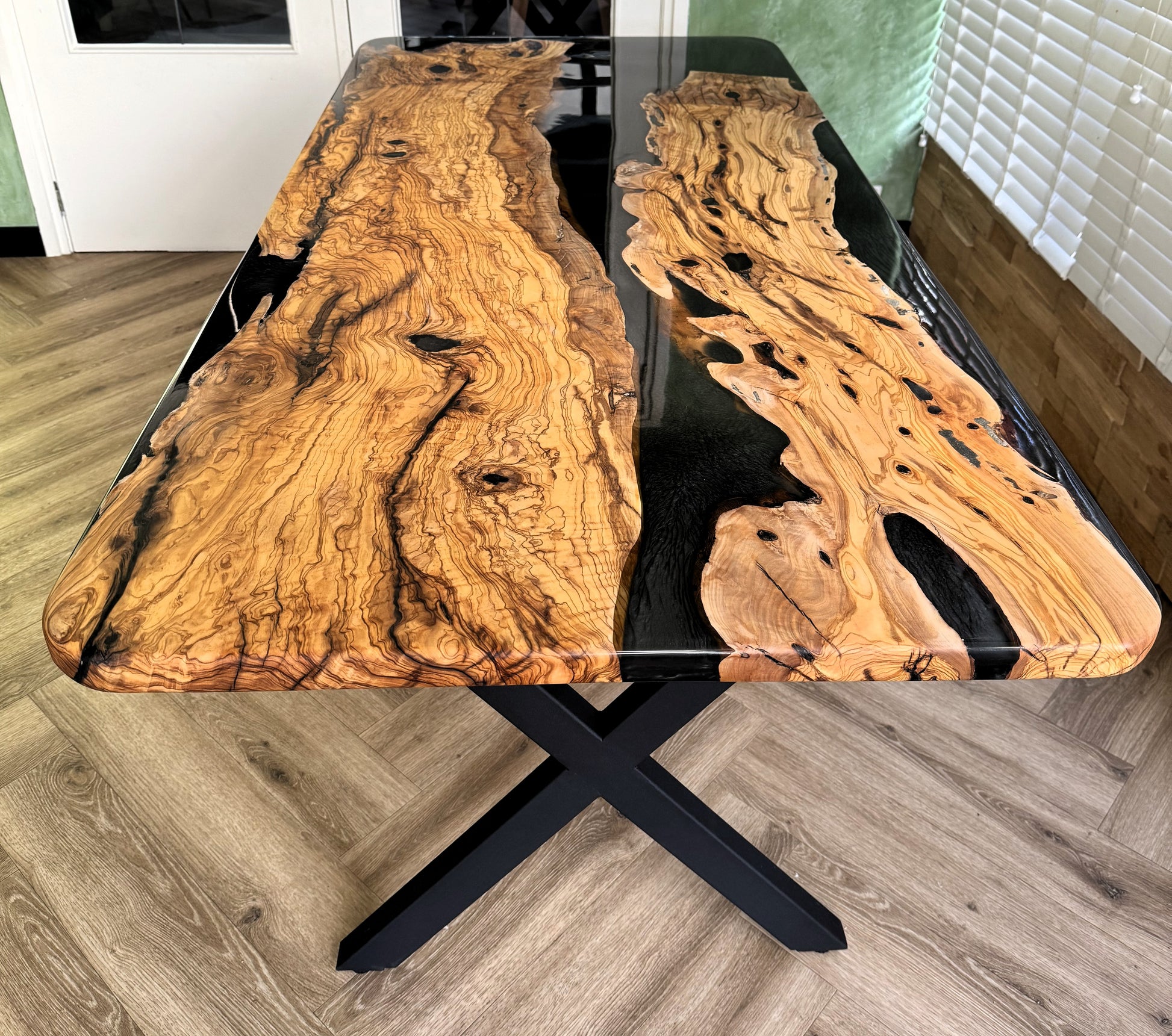 Epoxy Eetkamertafel van Olijfhout – 195x90 cm