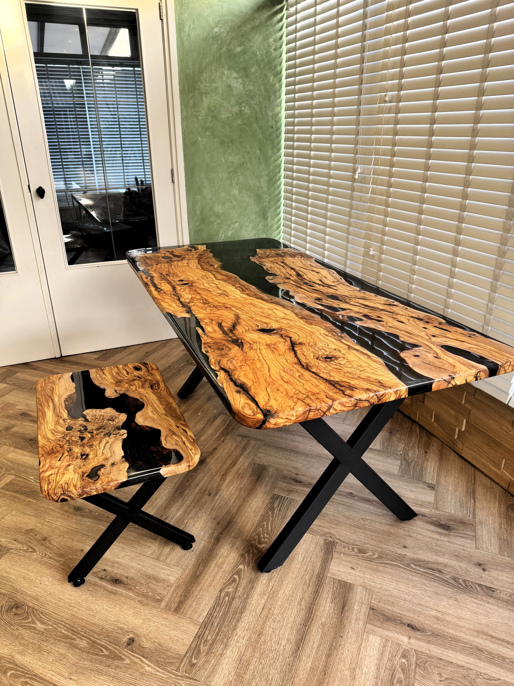 Epoxy eetkamertafel set olijfhout 195x90cm